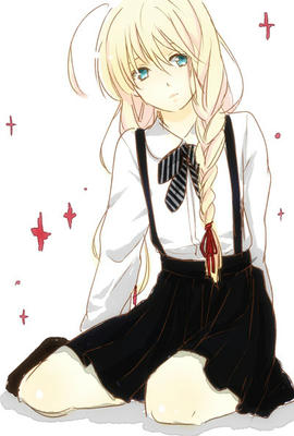 「yu_murinさんの好きなロリキャラは桃色がかった金髪で三つ編みのタンクトップ、吊りスカートに素足に革靴を履いた11歳の女の子です。 」
